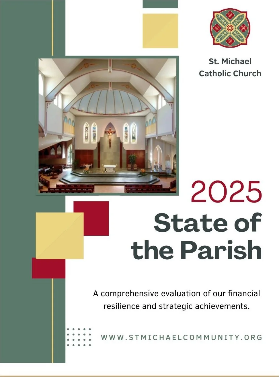 Fr. Sunny has completed our 2024-2025 State of the Parish report. This report is a comprehensive review of all the events that we hosted in our Church and within our Ministries last year. This report also highlights our Parish financials, our Building and Grounds reports, as well as our Faith Formation Program and our School. Please take the time to read about your Parish! Take a book with you after the Masses this weekend.